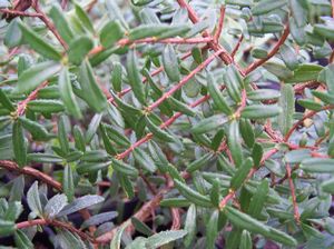 BROADLEAF EVERGREEN SHRUBSPaxistima canbyi - From the mountains of Virginia and West Virginia comes this fantastic evergreen ground cover. Narrow, semi-glossed dark green ellipses of leaves cover the stems on a low, mounding shrub that slowly, gradually increases its domain. Common names are Cliff Green (didn't I go to high school with him?), Mountain Lover (isn't that a blue grass tune??) and Rat-stripper (okay, okay - I got nuthin'). Where the moniker Rat-stripper came from no one seems to know but it's one of the wildest common names yet! Maybe Rat-stripper is a super hero who in the cover of night nabs the unwholesome: "You dirty rats..." stripping these ne'er-do-wells from the ugly underbelly of a law-abiding society. ...That was a tragic stretch. Like I said: I got nuthin'. The form we are offering may possibly be 'Nana'... a dwarf super hero. Okay, okay - I'm shutting up now... Dappled to open shade in constantly moist, friable soil that drains well... add some sand and small stone. In the wild it's usually found on calcareous soil so adding lime could very well be beneficial. Cutting grown.