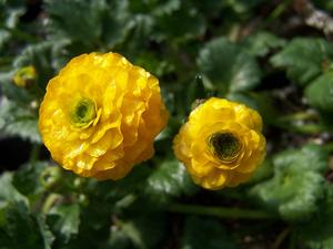 SUN PERENNIALSRanunculus acris 'Flore Pleno' - Double Yellow Bachelor's Button provide long bloom covered in deep golden yellow dime to nickel-sized double pompoms swaying above a carpet of nice foliage. This is a sterile form; it does not self-sow... BUT it will colonize and makes a great filler plant where deep golden yellow buttons aplenty are desired. They will provide a bright and enriching foil among larger, bolder perennials. Seems a good choice for the English garden and would make excellent accentuations in a cut flower bouquet. Listen, folks... common names gone wrong - these are not Bachelor Buttons which brings to mind Centaurea cyanus. If common names are your bent then Double Buttercups seems more apt. Site in sun planted in average to fertile draining soil. The species is found in Europe to West Russia. Where this double, sterile form may have been stumbled upon we do not know. But it's a good, low maintenance easy-to-please perennial that will work well and behave among other garden companions. Established pot grown plant from cutting.