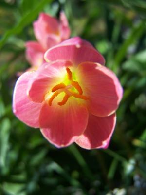 TENDER PERENNIALSZephyranthes x ‘Krakatau’ – This hybrid Rain Lily is gorgeous. The red touched with orange 6-petaled blossoms complete with bright yellow hearts begin blooming here in the middle part of summer continuing ‘til frost. Though the individual flowers of ‘Krakatau’ are not large, they are plentiful and the color combo makes them a showy standout. Color is apparently mutable because in pots this beauty has also exhibited a beautiful deep coral-pink tone. Gradual increase from this clumping bulb. The flower ages to softer peach tones over grassy mounds of arching dark green foliage in the full sun condition in which it is happy. Pot grown bulbs.