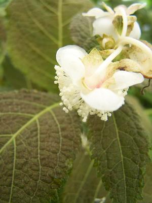 Two herbaceous woodlanders which are closely related to the shrub hydrangeas are beloved by some of the more practiced gardeners among our esteemed if not scary lot. Deinanthe (dine-ANTH-ee) is the fusion genus name from two Greek words, "deinos" meaning "wondrous" and "anthe" translating to "flower". The genus Deinanthe (dine-ANTH-ee) contains two members with wondrous flowers, Deinanthe bifida and D. caerulea.