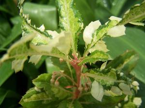 BROADLEAF EVERGREEN SHRUBSArdisia japonica 'Amanogawa' - This is the striking Milky Way Marlberry. Leathery serrated leaves are light green centered with irregular margins in forest green. Leaves are splotched with fairly large patches of white. Pale pink to white-touched-pink starry flowers open in summer. One-quarter inch red berries adorn this broadleaf evergreen in winter. Birds like the fruits. 'Amanogawa' lights the shady garden as it ground covers. New growth is pinkish adding to interest. Fall foliage picks up bronze infusions on the leathery leaves. Use 'Amanogawa' as a handsome ground cover, edging, forward in the foundation between shrubs, rock garden. Marlberry certainly makes an interesting potted plant in the north in the conservatory, in a cool greenhouse or a barely heated room's windowsill. But it makes a fantastic, suckering ground cover where it can be grown outdoors. Site in part sun to open shade planted in fertile, humus laden acid draining soil. Cutting grown.
