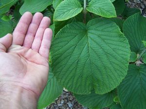DECIDUOUS SHRUBSViburnum furcatum - The Scarlet-leaved Viburnum is a large, rounded to broad spreading shrub with bold orbicular, pleated 6-inch by 4 to 5-inch leaves sporting serrated edges. It is rather rare in the U.S. White spring lace cap flowers are lovely. Berries lighten bright red late season overlapping with glorious shades of darker red and orange permeating the autumn leaves. Its large, bold and rounded leaves are a knockout. It appears to be very long-lived as it takes many years for flowering to commence. But the distinctive foliage alone makes this a worthy plant; the flowers are a wondrous event to await. Very reminiscent of our native Hobblebush, Viburnum lantanoides (formerly Viburnum alnifolium) we think that they are at least closely allied. And they flower simultaneously... could a hybrid be in the offing? Indeed, our native Hobblebush or Witch Hobble may be the long-separated ancestral New World relative of V. furcatum. Site in morning sun to three-quarters open shade in fertile soil - avoid harsh afternoon sun. More narrow and upright as a youth the Scarlet-leaved Viburnum will, as unfortunately true for too many of us, broaden with age. Established potted shrub from cutting.