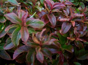 DECIDUOUS SHRUBSItea virginica 'Shirley's Compact' - A very dwarf form of Virginia Sweetspire that will achieve a beautiful domed shrub of small stature - only about 18 inches tall by approximately thirty inches wide in a decade or so. White, miniscule summer flowers occur among heavily textured, densely set medium green serrated leaves. Foliage turns beguiling crimson in autumn and once they fall off leave a handsome, twiggy mound in the winter landscape with reddish brown and olive colored stems. Neat plant. Please note: as easy as all of its larger siblings grow with abandon Shirley is fickle and sometimes just plain recalcitrant. Perhaps it's the tight and dense growth that invites trouble; could it be like Dana Carvey's calling as the church lady on SNL: "maybe its Satan?" We haven't a clue. Site in morning to mostly sunny sites in fertile, organic moist soil. For gardeners towards the northern end of its range spring planting is advised.