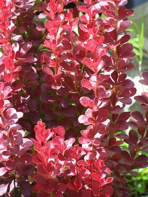 DECIDUOUS SHRUBSBerberis thunbergii ‘Red Hot’ – is a seedling selection made by Professor Jonathan Lehrer who spied it while doing Berberis thunbergii research as an undergraduate at the University of Connecticut. The new growth of ‘Red Hot’ is a scarlet orange-red, very much the color of the hot sauce for which Jonathan appropriately named this cultivar. The color is difficult to capture and these pics, though close, are not demonstrating the orange undertone in the red. The interior foliage is a light and bright cool green - the color of a nearly fluorescent granny smilth apple green, setting-off the fiery outer leaves. Some of the foliage demonstrates a fine lemon-lime halo at leaf margins. Autumn color is rich, deep and fiery red to dark red-purple before dropping. 'Red Hot' is very upright the first couple of years. Older stems arch out and away from the center or the shrub forming a vase shaped outline with a rounded top. There is no other Japanese Barberry color form like this. It is unique. Do not order 'Red Hot' if your state has outlawed the planting and selling of Berberis thunbergii. Plant 'Red Hot' where it can be grown and not be an invasive nuisance... and folks - there are places in the U.S where this plant is not the invasive nuisance that it is in the northeast so don't send me hate mail... Do unto others... Plant ‘Red Hot’ in fertile draining soil sited in full sun for best foliage color. Cutting grown.