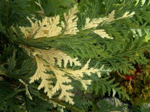CONIFERSChaemaecyparis nootkatensis 'Variegata' – A less common upright pyramidal form of Alaska Cedar with showy cream patches and splashes painted on blue-green foliage sprays. Foliage sets gracefully providing a gentle, casual and easy elegance. Slow growing, the variegated form of Nootka Falsecypress will top off at about 60 feet over a very long time period. The bark of all Chamaecyparis becomes increasingly beautiful with age and girth; Chaemaecyparis nootkatensis 'Variegata' is no exception. Large rich brown to gray-brown scales eventually peel away from the trunk and older branches. Eventually pruning away the lowest, oldest limbs exposes this exceptional ornamental characteristic. Please read the Genus Overview below.