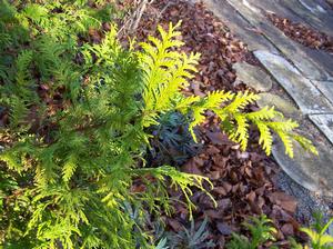 CONIFERSChaemaecyparis pisifera 'Gold Spangle' – This golden Sawara Cypress is not for the faint of heart! Large growing, 'Gold Spangle' can attain heights of 50 feet over a long period of time and may eventually reach 70 feet in optimum conditions... Plant it for your progeny. The bright yellow foliage displays an intermediate mixing of regular species Sawara and the threadleaf form. The golden color settles back to a bright green to gold-infused-green in autumn and winter; although some years it retains more of the golden color and really lights up in the winter landscape. Upright and pyramidal it's a beacon in all seasons and warms the heart in winter. The bark peels in a fine, vertical manner and is light, warm brown – a handsome characteristic. The bark of so many conifers is exceptionally handsome and all too often ignored. This will make a spectacular allee, a grouping of several would form an astonishing suggestion of a grove on a large estate or park or it would be just plain beautiful as a single specimen. Cutting grown. For northern gardeners these are best planted during the spring window and not in autumn... for southern gardeners there are greater possibilities but know your zone and what is genuinely feasible. Please read the Genus Overview below.