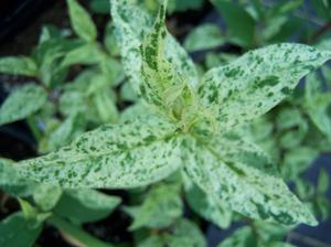 DECIDUOUS SHRUBSDeutzia crenata 'White Splashed' - All green leaves are speckled and spattered in white on this unusual form of Slender Deutzia. White flowers occur in abundance in mid to late spring. This would be smartly employed as a contrast shrub to solid green or purple-leaved plants, shrub or herbaceous in the perennial garden, the foundation or shrub border. Of easy disposition site it in full to mostly sunny locations in average to fertile draining soil. Established potted shrub, cutting grown.