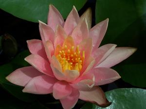 POND & WETLAND PLANTSNymphaea odorata 'Colorado Peach' - This Hardy Water Lily produces gorgeous salmon-coral pink summer flowers with rich yellow sexual parts. Add to this the pads which are deep, dark and glossy green with mottled maroon flecks and spots throughout. 'Colorado Peach' is one of our favorites. This medium grower can be planted up to 6 feet deep. Though said to not be particular about soil we find that sandy loam is best. Full sun. Hefty bare root division. Will not ship until May-ish.