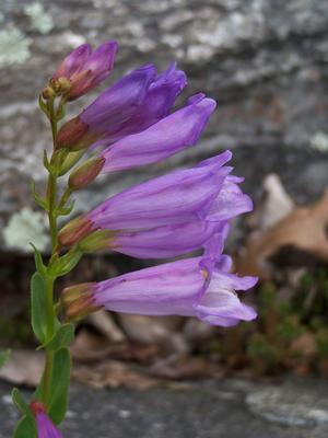 SUN PERENNIALSPenstemon fruticosus – Showy, two-inch lavender blue-purple flowers adorn this perennial subshrub in early summer and may bloom sporadically thereafter. Dark green leaves remain attractive all season long on a slowly spreading slightly mounding form. Shrubby Beardtongue (sounds like a character from Legend or perhaps the Lord of the Rings trilogy!) has settled happily into our full sun rock garden planted in scrabbled and impoverished soil. Cutting grown.