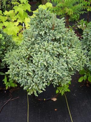 CONIFERSPicea omorika 'Nana' – This dwarf form of Serbian Spruce is cloaked in blue-green needles, soft to the touch. This is the true 'Nana' form and not 'Ericoides' which are sometimes confused in the trade. Picea omorika 'Nana' grows slowly into a rounded shrub wider than tall with a handsome branching habit. Full to mostly sunny condition planted in fertile, draining soil. Cutting grown. Please read the Genus Overview below.