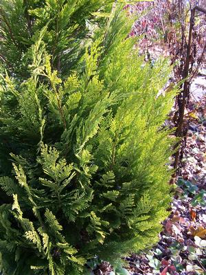 Conifers. This exceptionally diverse group includes mostly evergreens exhibiting all manner of size, color and shape cloaked in scale-like foliage as in Arbor vitae (Thuja) and Elkhorn Cypress (Thujopsis) and Junipers (Juniperus) generally to the needled species like Pine (Pinus) and Spruce (Picea). Some notable deciduous members include Larches (Larix), Bald Cypress (Taxodium), Dawn Redwood (Metasequoia) and Golden Larch (Pseudolarix). There is much vexing confusion for customers surrounding eventual sizes of these remarkably diverse cone-bearing plants which range from shrubby mat-forming members to majestic, gigantic trees with a roster of shapes and forms between.