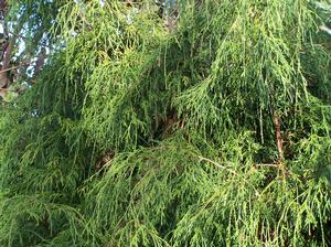 Conifers. This exceptionally diverse group includes mostly evergreens exhibiting all manner of size, color and shape cloaked in scale-like foliage as in Arbor vitae (Thuja) and Elkhorn Cypress (Thujopsis) and Junipers (Juniperus) generally to the needled species like Pine (Pinus) and Spruce (Picea). Some notable deciduous members include Larches (Larix), Bald Cypress (Taxodium), Dawn Redwood (Metasequoia) and Golden Larch (Pseudolarix). There is much vexing confusion for customers surrounding eventual sizes of these remarkably diverse cone-bearing plants which range from shrubby mat-forming members to majestic, gigantic trees with a roster of shapes and forms between.