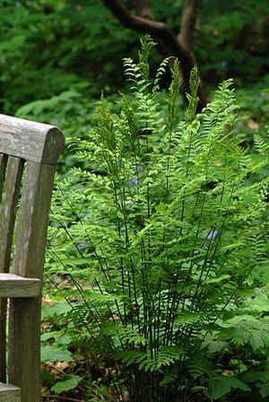 FERNSOsmunda regalis var. spectabilis – This form of the exquisite Royal Fern It is in a word: spectacular! Osmunda regalis var. spectabilis will form a majestic specimen or a classy, elegant backdrop to woodland plants that stay closer to the cool earth. These ferns are just wonderful with Jack-in-the-Pulpits which enjoy the same conditions. Even moisture in fertile ground sited in morning sun, dappled to open shade will keep this specimen fern content. The Royal Fern will sometimes pick up golden brown autumn color before harsh frosts settle it into a long winter's nap. Pot grown Division. Scroll down to the Genus Overview for more purple prose about ferns.
