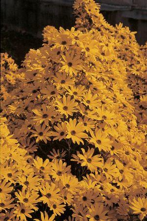 SUN PERENNIALSHelianthus salicifolius 'First Light' (PP13150) – This perennial Sunflower explodes in the late summer and autumn garden covering itself with warm, saturated golden yellow daisies with a darker central button. The entire stem including the mounded cushions of flowers will only grow 4 to 5 feet tall – much shorter and sturdier than many other perennial Sunflowers. Stems are very strong and support the bouquets so staking is unnecessary. 'First Light' makes a great cut flower, attracts butterflies, bees, potentially songbirds and is deer resistant. The golden yellow flowers which completely swamp the leaves and stems occur later in the season when other perennial Sunflowers have passed thereby extending the season. 'First Light' will work well with warm season grasses, nearly all other late season perennials including late daylilies and also shrubs which provide autumn berries and leaf color. Pot grown.