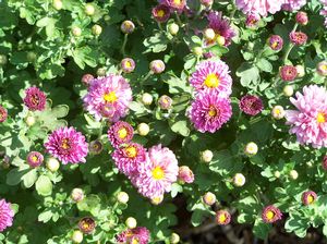 We strongly recommend spring planting in colder regions so that the plants will be well-established by the time cold weather arrives. Cut them back to a lower leaf axil by mid-July in the north, earlier farther south; doing so will result in better-branched plants on a more compact habit adorned with even more flowers at season’s end. But if you don’t, regardless, you’ll have multitudes of flowers on longer stems but possibly more decumbent plants. Plant all mums in full to part sun in fertile draining soil. Honeybees love them as this is one of the last flowering perennials to bloom in such abundance in the autumn in New England, along with some of the later asters.