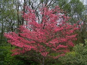 TREESCornus florida 'Purple Glory' - This is a hard-to-find smaller growing selection with red-pink spring flowers. The foliage emerges with a distinct bronze-purple color and gradually matures to green to green-bronze-purple. Autumn foliage color in deep red-bronze-purple shades occurs with bright red fruits adored by birds. Bark becomes increasingly mottled and flecked as the tree ages... 'Purple Glory' will take a long time to develop this aspect of interest. As Joan Kipling was credited with saying, "Live as if you are going to die tomorrow. Garden as if you are going to live forever." This dwarf-growing selection with typical domed outline is not easy from cuttings. Our plants are cutting grown and not grafted. It is not an easy selection from cuttings and is painfully slow to size up. These factors lend to its paucity on our site. Foliage is on close inspection is warped though from the distance this curiosity is not evident. If you want 'Purple Glory' nab it right away when it becomes available. This laudable species hales from the Eastern United States though this selection probably arose from seedling selection... does anyone know? Established pot grown trees from cuttings.