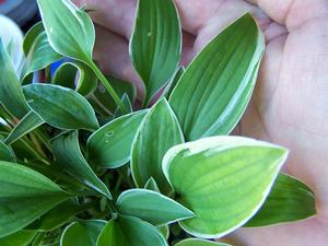 HOSTAHosta 'Redfield's Folly' (ex: Jonathan Lehrer) – A miniature hosta with all lance-shaped leaves edged in white. Lavender-purple flowers arise and blossom in August. Jon Lehrer stumbled upon 'Redfield's Folly' at a small nursery while vacationing in upstate New York and felt we should offer it. 'Redfield's Folly' is evidently very rare; definitely a hosta collector's plant if there ever was one! Dick Redfield lived but a couple of towns away from Quackin' Grass. Dick Redfield of rock garden fame lived in Scotland, Connecticut... not the Scotland across the pond. He, indeed, did shop here and it was always an honor and delight when he appeared. We had a good rapport with Dick and miss him this many years later. And now we have this rare miniature that traveled roundabout before coming home. Established pot grown division.