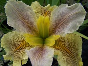 GRASSES & GRASS-LIKE PLANTSIris x louisiana 'Wow Factor' – A beauty! The chiffon yellow and chocolate brown delicately ruffled flowers are intricately veined in red-brown. Veining is concentrated at the centers of the falls becoming less at the edges. 'Wow Factor' flowers in June. Full sun in fertile, moisture-retentive soil or as a marginal at pond's edge. Pot grown division.