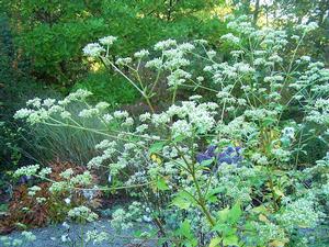 SHADE PERENNIALSPatrinia villosa – remarkable member of the Valerianaceae with domes of white flowers assembled in handsomely articulated broad clusters atop stems 3.5 to 5 feet or maybe slightly taller float like distant banks of perfect horizontal clouds. Flowering stems arise from coarse, dark green tufted rosettes of foliage. The assemblage of leaves which grow approximately 6 to 8 inches tall remain looking good and green all season extending into the climax of flowering. Blooming for weeks at the very end of the growing season this easy plant is not only useful but just plain beautiful with all the late season bloomers – from Solidago to grasses, Vernonia to Persicaria, asters, late blooming daylilies and the myriad of composites which fill this season with joy. This plant came to us from the original Heronswood Nursery and has been a late season mainstay in our gardens. It self sows with wonderful abandon in the garden for us from which it has never strayed and where it is most welcome. Patrinia is content in open shade to full sun. Fertile draining soil to woodland soils suit Patrinia villosa well. The hypothesis that Patrinia is an alternate host to daylily rust has proven untrue. Patrinia villosa is not an alternate host to daylily rust. Established pot grown plant from seed.