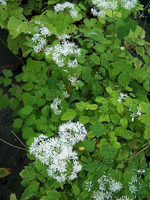 SHADE PERENNIALSThalictrum filamentosum var. tenereum 'Heronswood Form' - 'Heronswood Form' displays broad, frothy terminal pure white flowers en mass in long-blooming soft clouds. Flowers reign supreme in late spring and early summer. This lovely, delicate Meadow Rue was selected by none other than Dan Hinkley for its distinctly dwarf habit. Leaves are very pretty and not unlike delicate columbine foliage in look. 'Heronswood Form' will draw bees and butterflies. It's a charmer in openly to mostly shaded sites planted in fertile, draining soil. Established pot grown division.