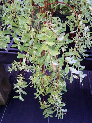 DECIDUOUS SHRUBSSalix integra 'Pendula' - This will form a most beautiful cascading shrub on a bank but especially fountaining like a waterfall spilling over a high wall. Pretty opposite leaves make a soft, very handsome articulated statement en mass. Salix integra 'Pendula' can also be trained into a standard from which the attractive when in leaf and after leaf drop stems form an umbrella from the top. Winter stems have a flush of red and green - not bad. Fully to mostly sunny site in fertile, moisture retaining soil. Though we do not know where this pendulous form was found the species hales from China, Japan and Korea. Established pot grown shrub from cutting.