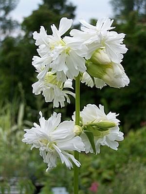 SUN PERENNIALSSaponaria officinalis 'Betty Arnold' - Differing from 'Rosea-plena' this double flowering form Bouncing Bet or Lady by the Gate is virginal white - the color of fresh driven snow. 'Betty Arnold' is a very easy-natured sun-loving perennial, pretty in the midsummer and late summer garden with an extensive bloom period. The straight species is found in every continental U.S. state and all of southern Canada. Site in any good, draining garden soil in plenty of sun. If ordered in our autumn catalog your Bouncing Bet will arrive cut back. Cutting grown or by division - either way a pot grown established plant.