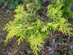 Conifers. This exceptionally diverse group includes mostly evergreens exhibiting all manner of size, color and shape cloaked in scale-like foliage as in Arbor vitae (Thuja) and Elkhorn Cypress (Thujopsis) and Junipers (Juniperus) generally to the needled species like Pine (Pinus) and Spruce (Picea). Some notable deciduous members include Larches (Larix), Bald Cypress (Taxodium), Dawn Redwood (Metasequoia) and Golden Larch (Pseudolarix). There is much vexing confusion for customers surrounding eventual sizes of these remarkably diverse cone-bearing plants which range from shrubby mat-forming members to majestic, gigantic trees with a roster of shapes and forms between.