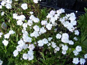 SUN PERENNIALSSilene alpestris 'Flore-pleno' - Pure white double flowers with the edges of all petals appearing as if the woodland fairies in the middle of the night scalloped them with pinking shears... those little imps! The lovely mid to late spring flowers are reminiscent of double florist carnations but in miniature. The foliage stretches into a cushy, semi-glossed deep green mat. It's seriously cute and pretty... useful, too. The Alpine Catchfly is great for edging a sun-filled garden, along a sun-drenched walk, dotted in a rock garden or used as edging before taller plants. Sandy to bony average to somewhat impoverished conditions; too rich and moisture retentive a siting will cloy roots and crown resulting in rot. The species originates in the Eastern Alps. Pot grown by division.