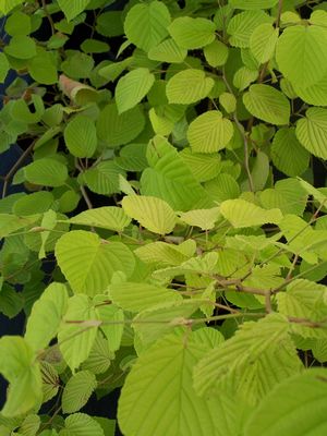 DECIDUOUS SHRUBSCorylopsis spicata 'Aurea' – The approximately 2” to 4” long by 2” to 3” wide golden leaves are a heavily corrugated. Though it is said that this plant is more content in open shade we have found at the northern end of its range when grown in more sun that the gold color is more pronounced strongly showing-off the corrugations in each leaf. It is very beautiful in either condition. This golden leaf form of Spike Winterhazel with dark brown twiggy zig-zag branching patterns in a wild array supports enormous quantities of 1” to 2” racemes of soft primrose yellow flowers in early spring. This may be the very same form as 'Ogon' and is virtually indistinguishable from 'Golden Spring' which is patented – Lord knows why if it's virtually indistinguishable from the form(s) that are not. Don't get me started. In northern climes spring planting is highly recommended... also, winter protection is strongly recommended for 2 to 3 years until the shrub truly establishes at the far northern end of its range. Cutting grown.