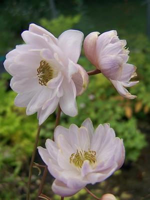SHADE PERENNIALSAneomonopsis macrophylla "double-flowered form" – Bluish lavender double flowers dangle on purple-black wiry stems. They are delicate, florid and dance in late summer breezes. Flowers age to white. This is an especially rare form of a choice Japanese woodlander, it prefers fertile soil consistently moist in a moderately sheltered situation. We imported these from Japan. Plant Aneomonopsis macrophylla in part to full shade. Established potted False Anemone from division.