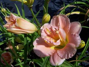 DAYLILY (HEMEROCALLIS)Hemerocallis ‘Mother Superior’ - Lovely double rose sporting a melon / lime heart. Harbors the possibility of rebloom. Hybridized by Kirchhoff-D, introduced in 1981. From the pairing of 'Jock Randall' with 'Embassy'