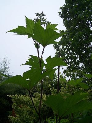 SHADE PERENNIALSFilipendula camtschatica (ex: Louis Raymond) - Giant Meadowsweet is a big, bold and robust perennial with huge lobed leaves, stems topped with white to buff-cream cushioned flowers. The soft, irregular cushiony feathers composed of densely-set innumerable florets occur very late spring into summer here in northeastern Connecticut. They appear as windswept cotton candy. The lobed palmate leaves are handsome. Stems will stretch to upwards of 7 feet. Each leafed stem may achieve 18 to 24 inches in width. As this is a colonizing perennial a grand, bold stand will gradually emerge in a matter of several years. Not for the shy or small garden this is a plant of largess whose forceful stature will demand notice. And it will be fantastic in the larger perennial garden set in part to full sun in average to fertile draining soil where it will draw butterflies. Established potted Giant Meadowsweet from division.