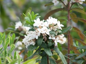 Daphnes are shrubby members of Thymelaeaceae. Many have thrived in our xeric garden which provides a deep root run, good drainage with no extra water during droughts. We add dolomitic limestone to the planting holes when initially interring them. Most have fragrance which is heavenly, perfuming the air near where they bloom. We have observed those that flower or rebloom in summer draw hummingbirds.