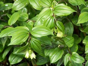 The Fairy Bells are fantastic woodland denizens closely allied with Solomon Seal and Bellwort. Stems arise and often arch as with their relatives providing an elegant appearance which contrasts well with other shade loverss. Flowers, too, are often showy occurring at the terminal tips of stems as in Smilacina but each floret is more in the appearance of the bell-shaped flowers of Polygonatum (Solomon Seal) and Uvularia (Bellwort). They all prefer fertile soil high in organic matter in morning sun/afternoon shade, open shade or dappled light conditions. The following offerings are established pot-grown divisions from our plants.