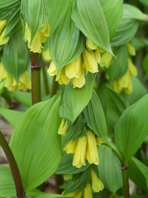 The Fairy Bells are fantastic woodland denizens closely allied with Solomon Seal and Bellwort. Stems arise and often arch as with their relatives providing an elegant appearance which contrasts well with other shade loverss. Flowers, too, are often showy occurring at the terminal tips of stems as in Smilacina but each floret is more in the appearance of the bell-shaped flowers of Polygonatum (Solomon Seal) and Uvularia (Bellwort). They all prefer fertile soil high in organic matter in morning sun/afternoon shade, open shade or dappled light conditions. The following offerings are established pot-grown divisions from our plants.