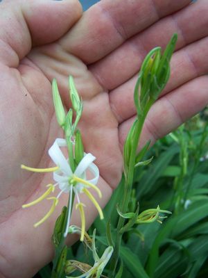 SHADE PERENNIALSDiuranthera major (syn. Chlorophytum major) – 2 very full pots available. This is the Hardy Spider Plant. Yes, this is a hardy relative of the well-known hanging basket plant complete with long arching lance-shaped green leaves 16” to 18” long. Multitudes of husky, late summer stems arise growing considerably taller than the foliage; they sport dozens of white flowers composed of narrow petals surrounding central golden stamens. Flower stems grow taller than the 16 to 18-inch designation. Bees love it. It's a clumper. And if happy it will self-sow. Who’d a thunk: a Hardy Spider Plant?! This will make an easy-natured low maintenance ground cover - an impressive one at that! If ordered in our fall catalog your perennial will arrive cut back. For gardeners towards the northern end of its range spring planting is advised. Established potted plant, seed grown.