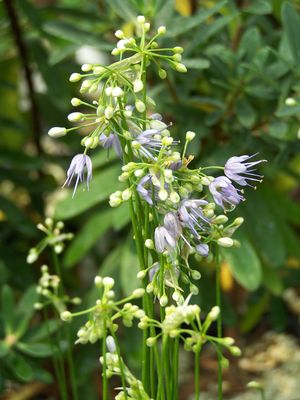 ARID LAND PLANTSAllium cyaneum – This is a sweet, small ornamental onion with deep blue globes poking above the fine grass-like foliage. They bloom early summer opening from white buds that are reminiscent of miniature exploding fireworks. Sit in sun planted in well-drained soil. Not a weedy species we cannot understand why it is not more often seen. Allium cyaneum is small enough for a trough and lovely in the rock garden or en masse at the front of the full sun border. If ordered in autumn your Allium will arrive as dormant potted bulbs.