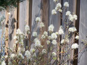 DECIDUOUS SHRUBSFothergilla gardenii ‘Blue Mist’ – 'Blue Mist' is a beautiful somewhat smaller growing form with glaucous blue to blue-green foliage on a slowly mounding and spreading framework. Showy squat fat white bottle-brush flowers in mid-spring just as the foliage is beginning to emerge adorn the stems like bright lanterns emitting a sweet fragrance. It is a most handsome, understated shrub in the summer garden. Confetti colors follow in autumn – gold, orange, red and in some years a touch of purple, too. Our plant is a beautiful dome-shaped mound in a 10 year period. After 10 years 'Blue Mist' has grown larger than we had been told it would... it has grown 5+ feet at the top of the dome by about 7 feet wide. We love all the fothergillas – this is yet another aristocratic genus in the Hamamelidaceae; in our estimation they can do no wrong! In the north plant it full to part sun in fertile and draining soil or woodland conditions. Cutting grown.