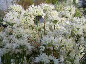BULBSAllium thunbergii ‘Album’ – This is the white blossoming form of the Japanese Flowering Onion. Blooming in October here it provides fresh texture with hardy mums – especially the naturally dwarf Chrysanthemum ‘Mei-kyo’, Colchicum and Chrysanthemum bombyciferum ‘Pink Bomb’. Site Allium thunbergii ‘Album’ in fertile, draining soil in plenty of sun.