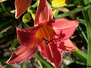 DAYLILY (HEMEROCALLIS)Hemerocallis ‘Hot Toddy’ - This is a very nice, showy large-flowered azalea pink flower with a gold heart.