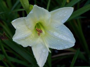 DAYLILY (HEMEROCALLIS)Hemerocallis ‘Joan Senior’ - This is one of the best of the near white daylilies with a greenish heart. Petals are heavily recurved. This is a cool, refreshing color during a hot summer day.