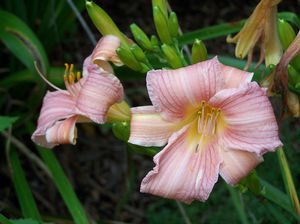 DAYLILY (HEMEROCALLIS)Hemerocallis ‘Ling Rose' - ‘Ling Rose’ is light pink with a lavender overlay sporting subtle garnet veins. Midribs are pale cream-pink. Sepals are light pink. Great bud count and a long bloom period.