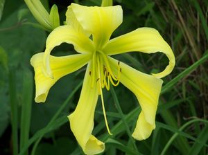 DAYLILY (HEMEROCALLIS)Hemerocallis 'Spider Miracle' - A huge yellow infused with lime spider type. More yellow with petals less recurved than 'Easy Ned'. It's amazing!