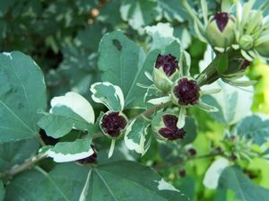 DECIDUOUS SHRUBSHibiscus syriacus ‘Purpureus Variegatus’ – Aside from the cream-edged and splashed green leaves the most unusual feature of ‘Purpureus Variegatus’ is that it forms a huge number of buds in midsummer, one sometimes two buds where leaf meets stem – in the axils. The buds expand into approximately 1 to 2” globe-shaped structures. Curiously, these buds do not fully open into flowers, sometimes they partly open but never fully. It is however evident that the flowers would be fully double. These axillary buds of deep, dark red purple stud the vertical stems like large blackened amethyst gem stones, opulent and gorgeous. Some dislike this plant. Personally, I think it fascinating. In combination with perennials or other shrubs it can be a most striking addition to the garden providing a most rare and unusual contrasting texture – it simply depends upon your vision. Site Hibiscus syriacus ‘Purpureus Variegatus’ in plenty of sun planted in fertile soil. Cutting grown.