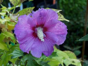 DECIDUOUS SHRUBSHibiscus syriacus "white leaves and pink-purple flowers" (ex: Jonathan Lehrer) - A neat selection of Rose of Sharon with leaves that emerge creamy white and become eventually infused with increasing green, finally darkening to solid green. The lovely shrub is studded with pink-purple hibiscus flowers with a deep red-purple eye zone for a long period beginning in mid summer and lasting until fall. Site in full sun planted in fertile moisture retaining soil for best performance. If you have the room consider pairing Buddleia davidii 'White Profusion' with Hibiscus syriacus "white leaves and pink-purple flowers" for an eye-popping, long blooming late season display. The vibrant pink-purple hibiscus circles contrasted with the large white cones of the buddleia... well, the combo is truly dazzling. It may be wise policy to protect your hibiscus for the first 2 or even 3 years in the northern part of its range. Established pot grown shrub from cutting.
