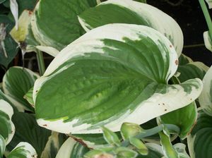 HOSTAHosta ‘Diana Remembered’ – 'Diana Remembered' produces 3.5” elongated white rounded bell flowers, showy and beautiful. Gently trumpeting then weeping with age the weight of the blossoms cause the flowering stems to lean gracefully. Each floret emits a heavenly fragrance, that of the August Lily, Hosta plantaginea, one of its parents. A broad band of creamy white margins each medium green leaf, the tuft of foliage creating a beautiful dome. Longitudinal variegations can also be seen in the petioles. To flower well H. plantaginea, in the extensive clan of species and hybrids is a species in exception to the shade rule requiring more sun than others. So, be certain this plant receives a few hours of strong daily sunlight for better flowering. Morning sun is best. Size: 15 inches x 30 inches, scapes: 28 inches.