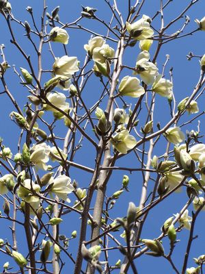 TREESMagnolia x ‘Ivory Chalice’ – This is one of the less commonly available hybrids from the cross of M. acuminata with M. denudata. It is a vibrant grower with gorgeous creamy yellow fragrant 6” wide chalices in May occurring in such numbers that it is like a mind-blowing detail of the Milky Way. The heavy-textured waxy blooms fade to ivory. Large paddle-shaped leaves often turn golden brown in autumn. The bark is smooth and light silvery brown, attractive in the winter landscape. Site it in moist, fertile soil in part to full sun. This is another magnolia that we have some difficult rooting; therefore, we may be lucky enough to successfully root but a few and perhaps not every year. Northern gardeners: spring planting is strongly advised.