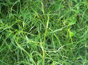 DECIDUOUS SHRUBSMorus alba ‘Nuclear Blast’ (syn. ‘Itsogumo’) – This dwarf, shrubby form of White Mulberry is a wild-haired tangle of stems and foliage… well, what passes for foliage. The leaves, if you can call them that, are mostly composed of the barest of tissue subtending the central leaf veins. Some of the foliar tissue may irregularly extend a bit broader but this is the exception rather than the rule. The result is a fantastical soft mounding shrub of most unusual texture in a celery green color. Autumn tone is a respectable yellow. We are not entirely certain of its range but have attempted it in three different locations here in USDA zone 5b losing all 3 in three different winters; as such we expect it requires a milder climate than our own. For gardeners towards the northern end of its range spring planting is advised.