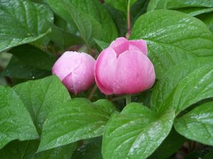 SHADE PERENNIALSPaeonia obovata – This lovely woodland peony flowers in early summer with showy, single pink flowers, weeks later than P. japonica. October into November in northeastern Connecticut, the seed pods, like large medieval jesters’ hats split open to reveal a brilliant crimson, fleshy backdrop, a foil to the pollinated dark blueberry-like fruits. The late season interest lasts for many weeks and is almost like a second flowering making for striking interest in the very late season woodland garden. Foliage remains clean for us - right into autumn sometimes picking up gold to reddish overtones before hard cold takes it down. Site in fertile draining soil in part, dappled to open shade. Pot grown peony from seed or division.