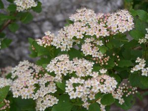 DECIDUOUS SHRUBSPhysocarpus opulifolius ‘Nanus’ – 'Nanus' is a smaller mounding form of Ninebark with green leaves. Pretty buds in light pastel pink open into typical white flowers with purplish stamens. Fall color can be a mix of colors with red as a base. ‘Nanus’ can be used on an embankment, as a filler shrub in a hedgerow between and before larger shrubs or even as an edge of the woodland shrubbery. It is also a good plant to reclaim wildlife areas. And due to smaller size and terrific mildew resistance it is a good breeding parent with gold and purple-leaf forms to explore the possibility of new, smaller cultivars. This is an irregularly rounded and mounding form. Not only is it useful it is adaptable as well: to sun, shade and wetter or even drought conditions. Cutting grown.